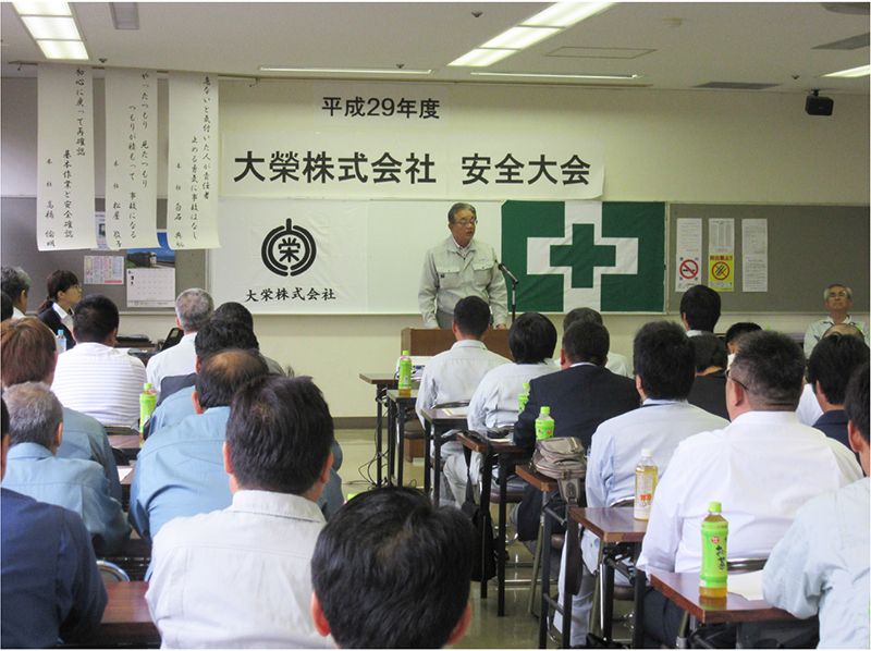 - 安全大会の開催。毎年6月に協力業者様と一緒に安全大会を開催しています。