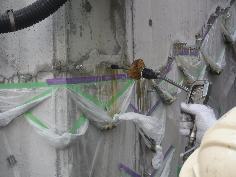 止水工事とは、構造物における漏水の原因を調査し漏水部からの水の流出を止めることを目的とした工事です。当社では護岸・岸壁、トンネル、水槽、マンホールからビル等各種コンクリート構造物の止水を承ります。